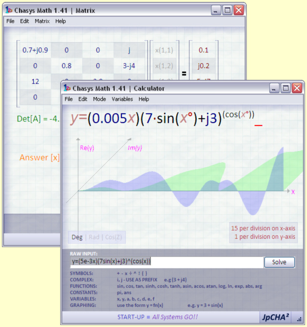 (Chasys Math Calculator), and a matrix equation solver that can handle