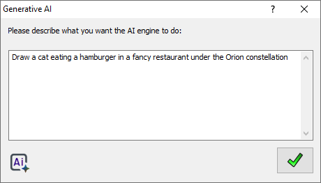 To use Generative AI plug-ins, choose a tool or an option that is AI-capable the select the appropriate “Use AI” or “Generative AI” option. If the operation in question requires you to type instructions for the AI engine (this is called an AI “prompt”), you will be presented with a dialog box where you can do that.