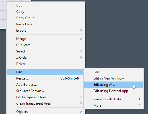 rather, you go to the normal “Edit” menu for the layer and you select “Edit using AI”, write your instructions and continue: