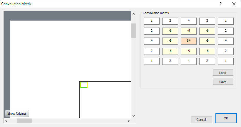 You will be provided with a dialog box in which you specify the elements of the convolution matrix to be used to implement