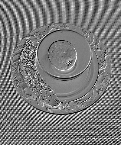 Each pixel is replaced either by a highlight or a shadow, depending on light/dark boundaries on the original image. Low contrast areas are replaced by a plain background. The resulting image resembles a paper or metal embossing of the original image, hence the name. Three modes of operation are supported; normal, emboss and alpha.
