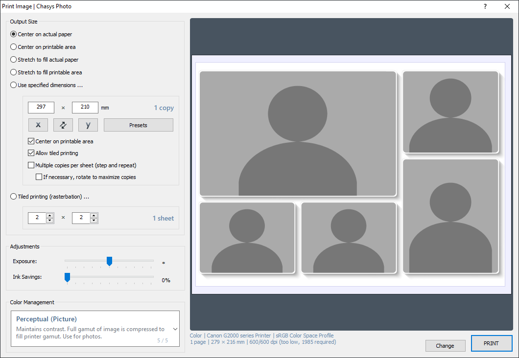printing in Chasys Photo Editor. It allows you to select a printer, printing