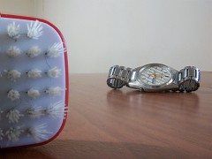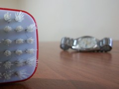 In the first image, the wristwatch is in sharp focus but the hairbrush is out of focus, while in the second the reverse is true. The image on the right shows the result of running Focus Stacking on them. Chasys Photo examines the images, identifying the level of focus for each pixel. It then combines the pixels that have been identified as the most “focused” to create the final image.