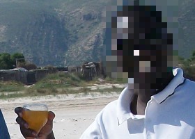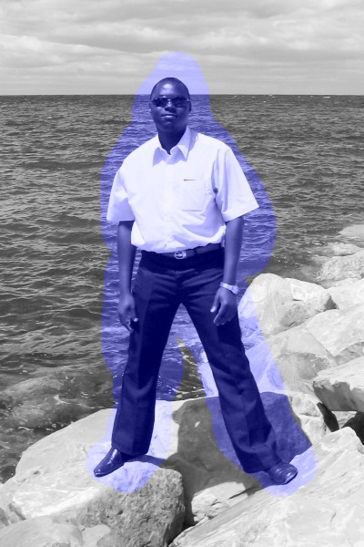 Yes, that’s yours truly at some stony beach very far away from Kenya (we have the best sandy beaches in the world) very many years ago. Copy this image into your Chasys Photo window and select dark blue as your current color. From your toolbox, select the Effects Brush tool and select its Colorize Foto option . Set the brush width appropriately (width parameter on the Tool Options tab) and paint yours truly in blue as shown below: