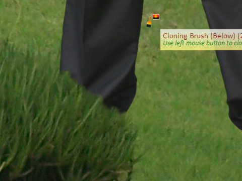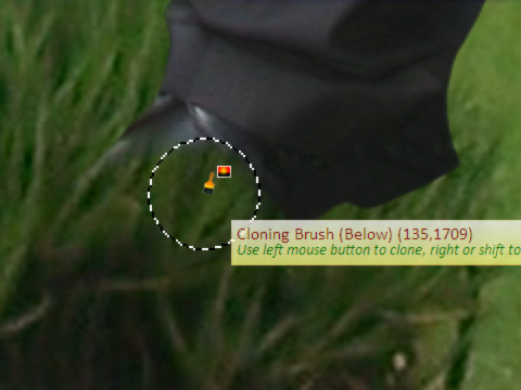 With most of the work done, we can now turn our attention to the details. The first thing that needs sorting out is the foot in the grass. The Cloning tool can come in handy here; I used it to do the grass around the shoe: