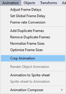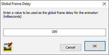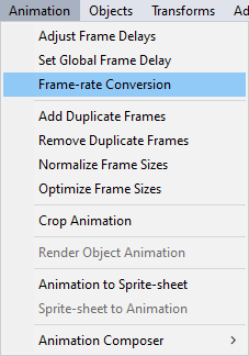 Once the video is loaded, you can edit it be removing the frames you don’t need. Simply select the frame with the Hand Tool and press Delete to remove it. Movies generally have higher frame-rates than what most people prefer in GIF animations; i.e. they generally update faster. A lower frame rate will make your file smaller but might make the movement appear jerky. If you wish to adjust the frame-rate without affecting the play-back speed of the video, just select “Frame-rate Conversion” from the “Animation” menu then select a new frame delay: