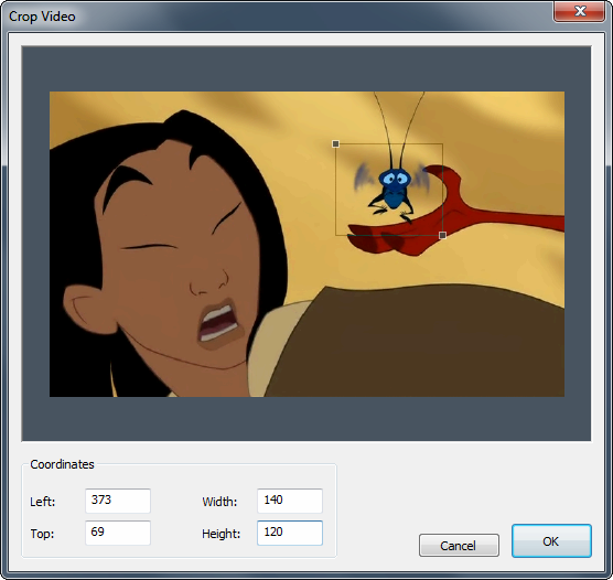 When doing GIF animations for avatars, you're generally interested in just a small region in the video, like the bug in the frame below. To cut out this region, you need to crop the video, just like you'd crop an image. To do that, go to the “Animation” menu then