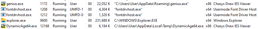 - “genius.exe” pointing to “C:\Users\<username>\AppData\Roaming\genius.exe”,